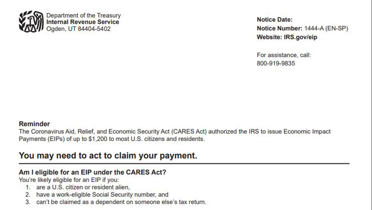 Receiving a letter does not guarantee that you are eligible, but the IRS said you are likely eligible if you are are “a U.S. citizen or resident alien,” have a work-eligible Social Security number and can’t be claimed as a dependent on someone else’s federal income tax return.